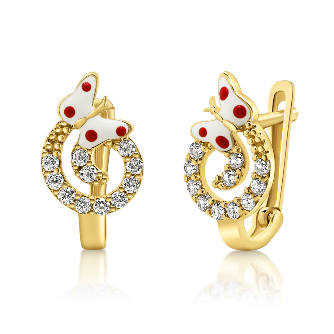 Cercei din aur galben de 14K cu pietre Cubic Zirconia și Email.