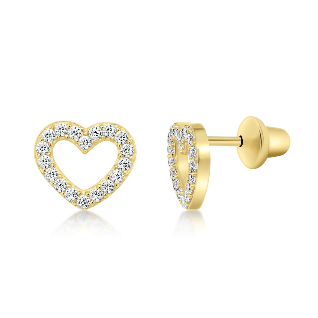 Cercei pentru copii din aur galben de 14K cu protecție și pietre zirconia.
