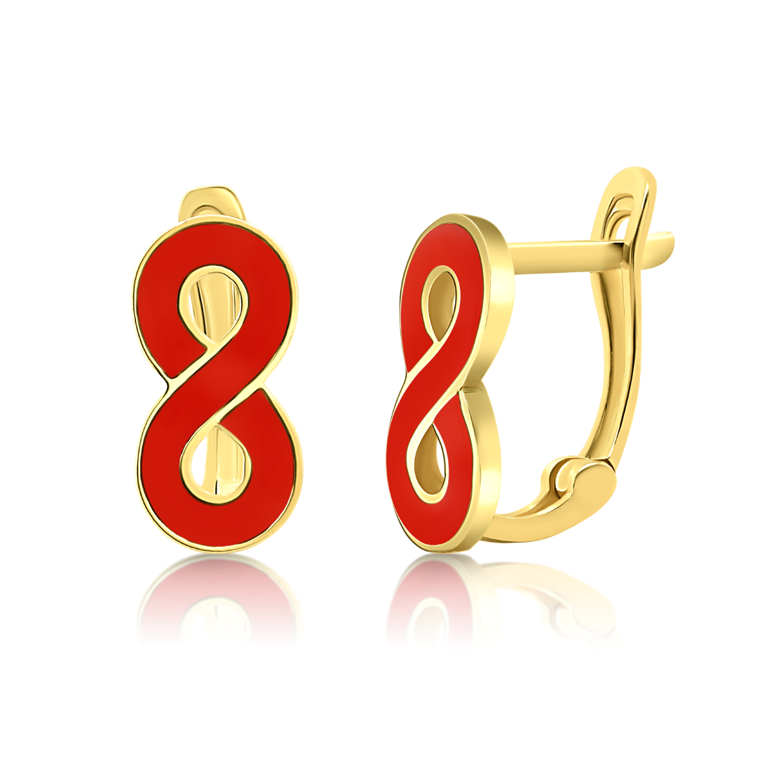 Cercei pentru copii din aur galben de 14K cu Email roșu.