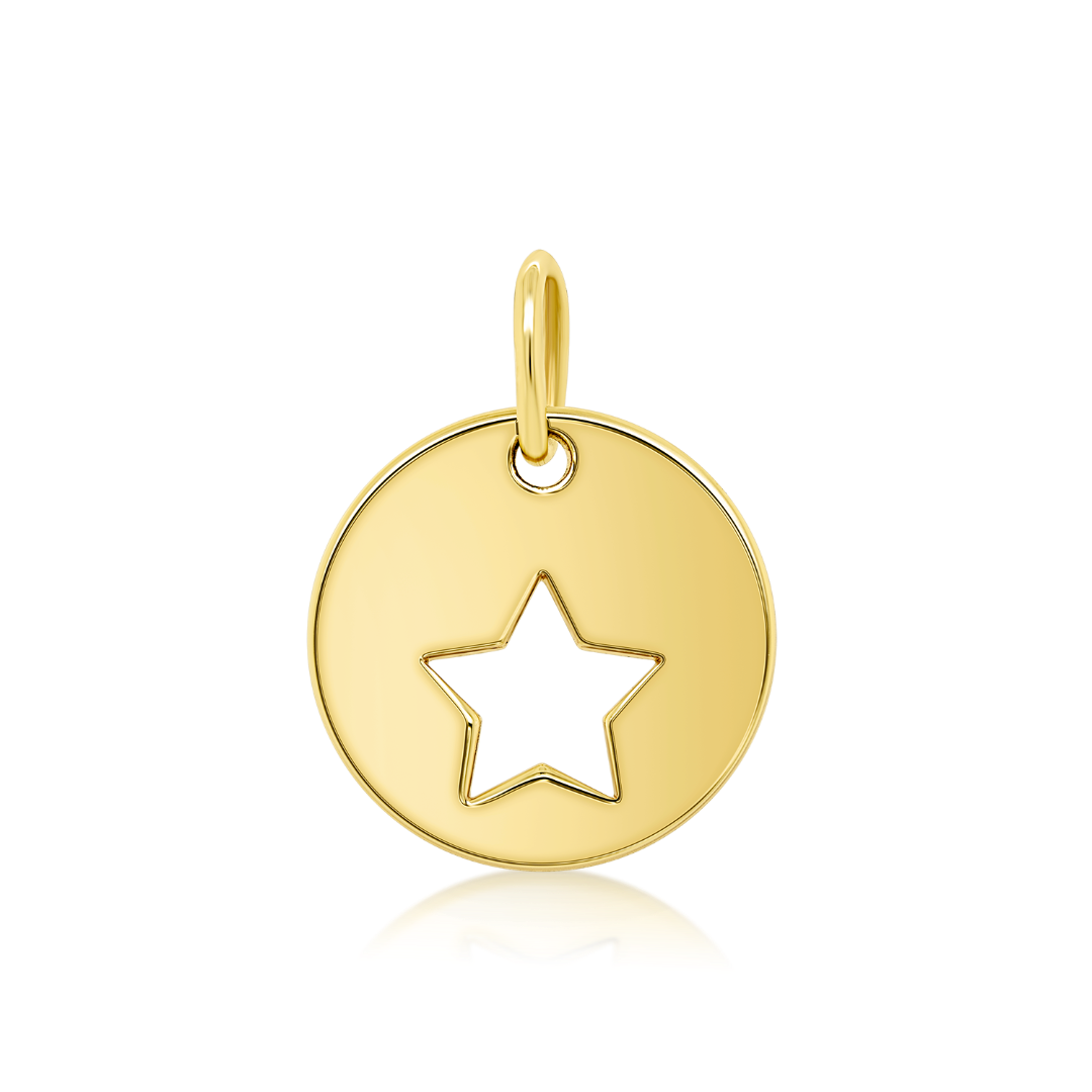 Pandantiv rotund din aur galben de 14K cu decupaj stea.