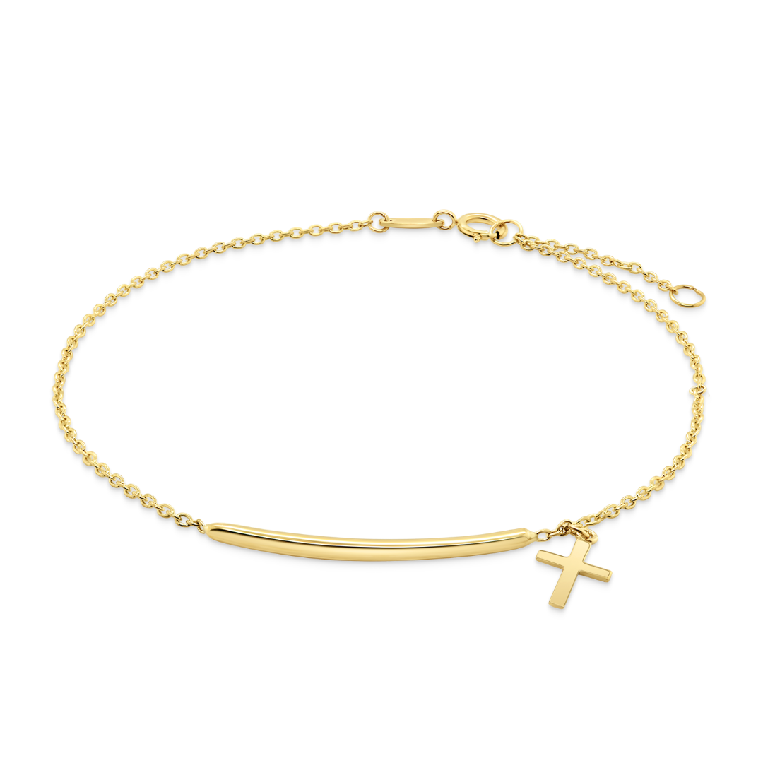 Brățară din aur galben de 14K cu element cruce.