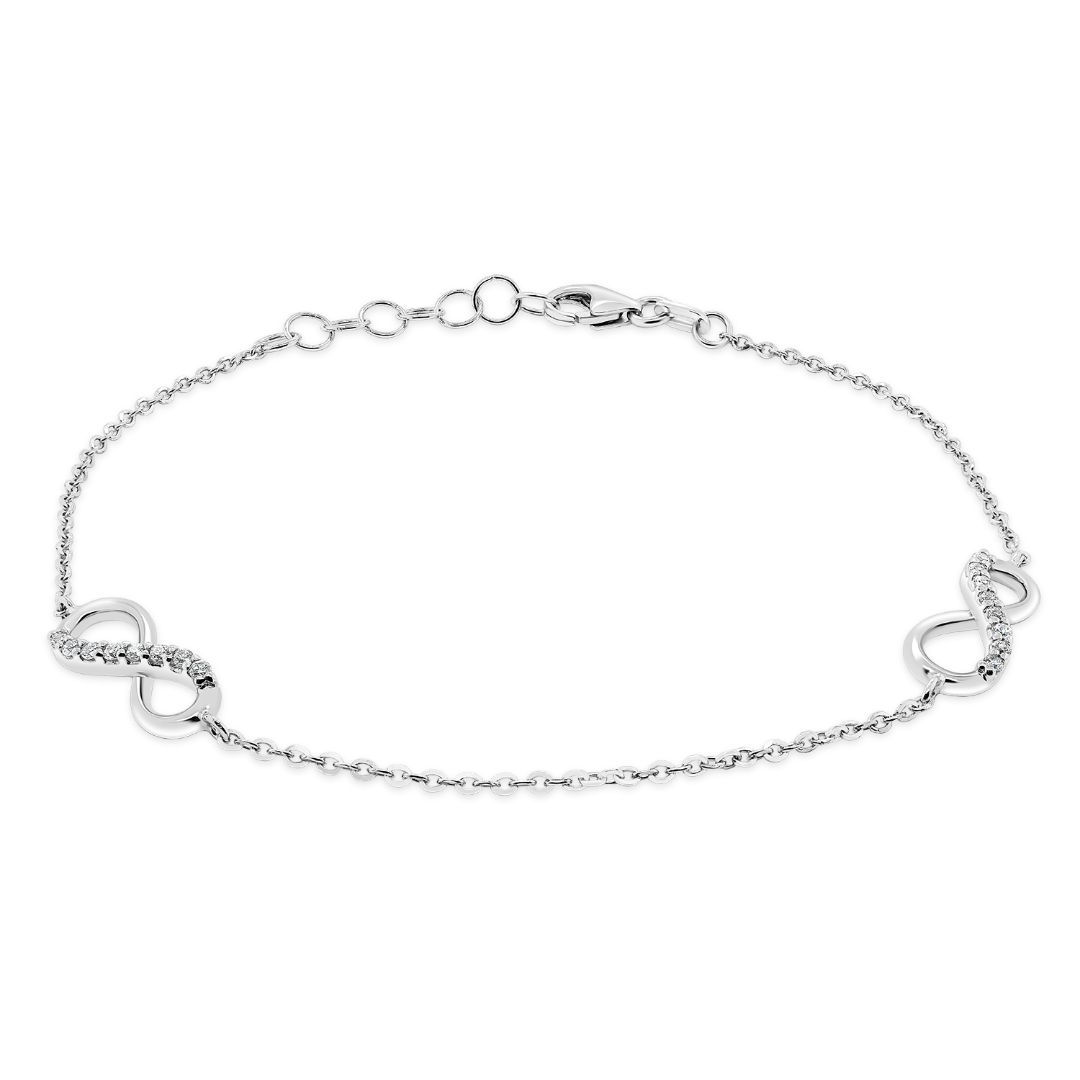 Brățară din aur alb de 14K cu element infinit și pietre cubic zirconia.