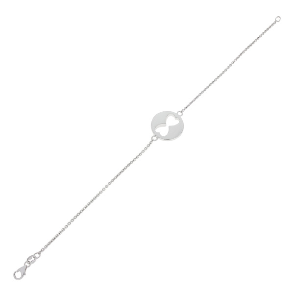 Brățară din aur alb de 14K și pandantiv cu decupaje în formă de inimă.