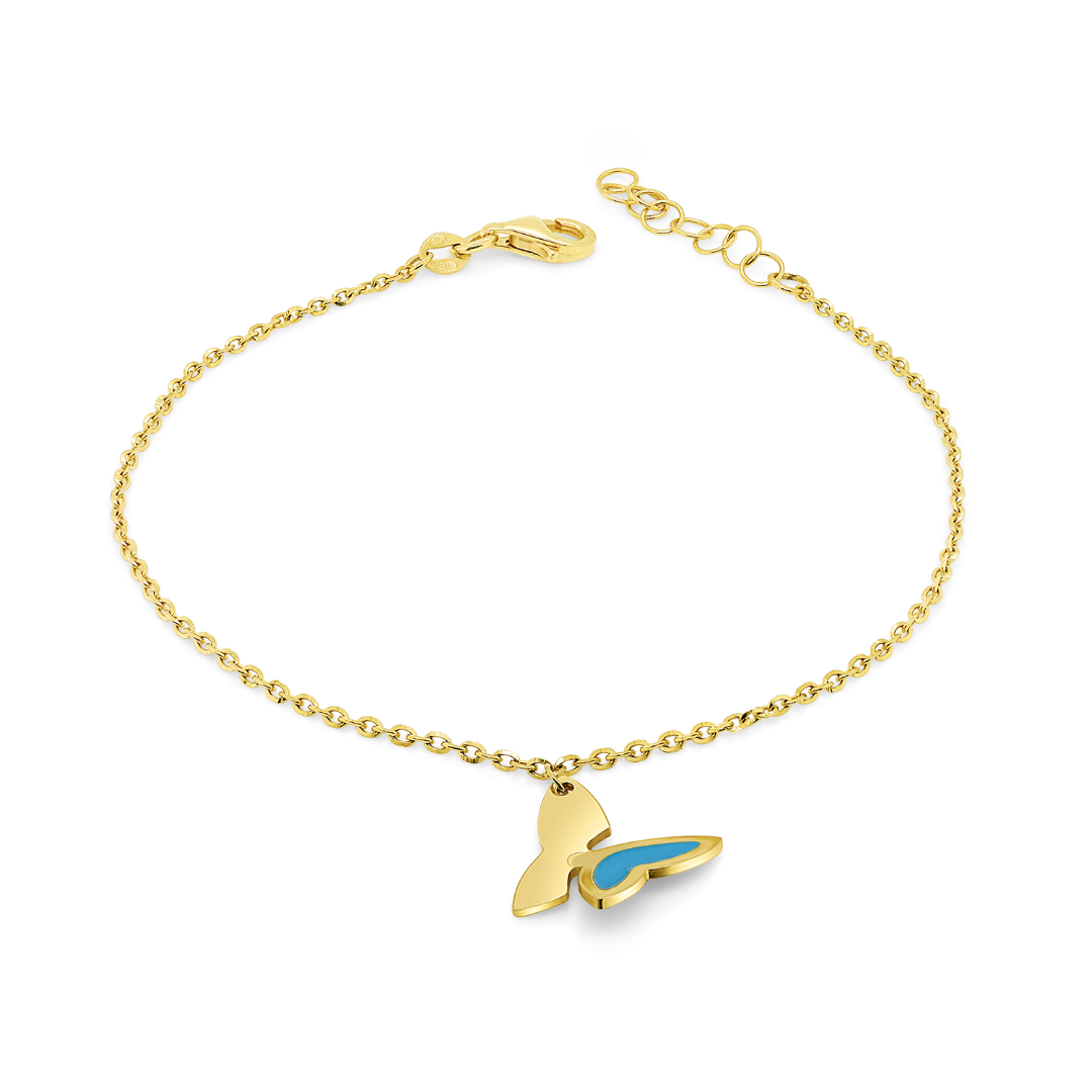 Brățară reglabilă din aur galben de 14K, cu pandantiv fluture și Email colorat.