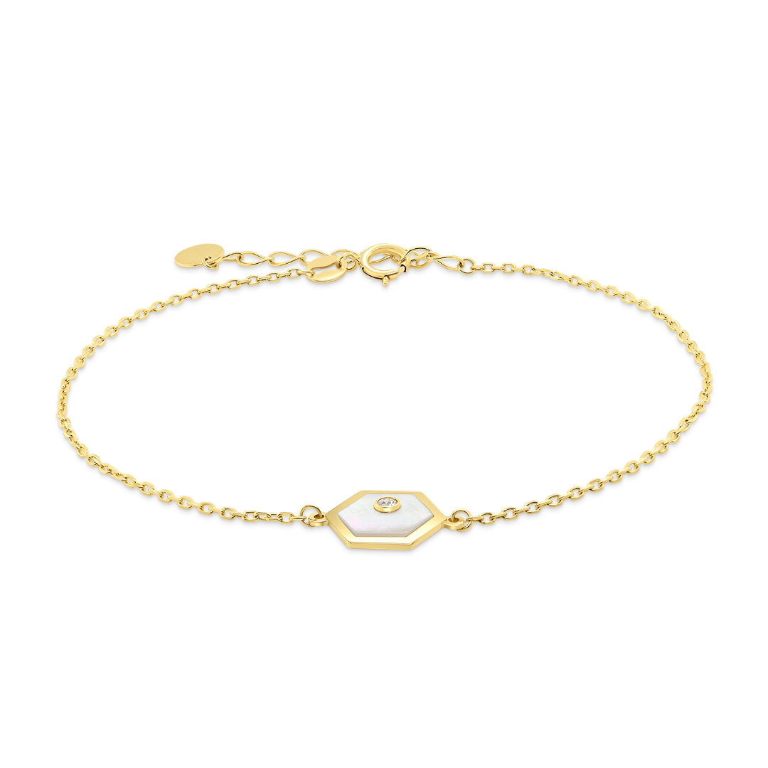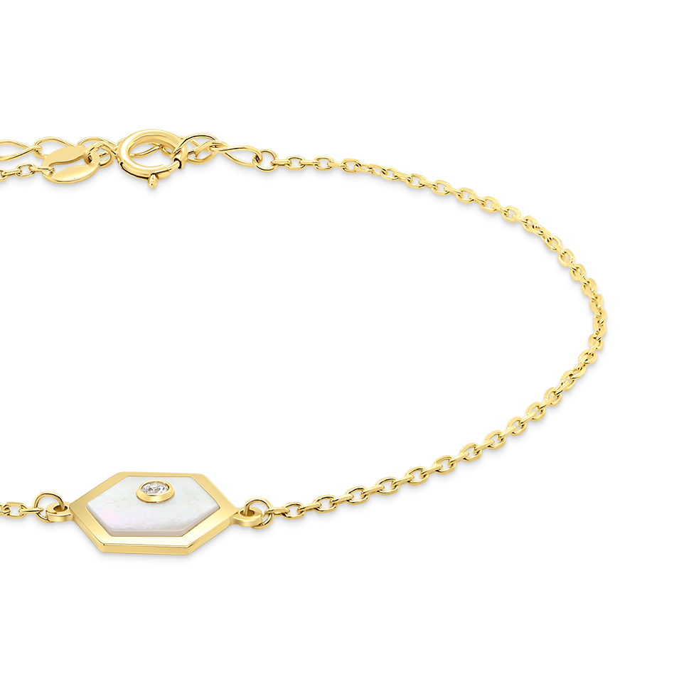 Brățară din aur galben de 14K cu piatră cubic zirconia și Sidef.