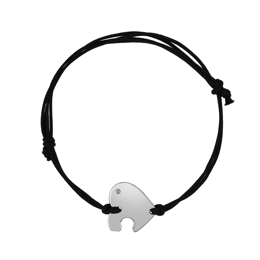 Brățară cu șnur și element inimă din aur alb de 14K cu Diamant natural