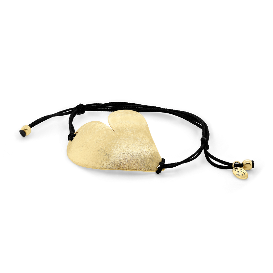 Brățară cu șnur negru și element inimă satinată din aur galben de 14K.