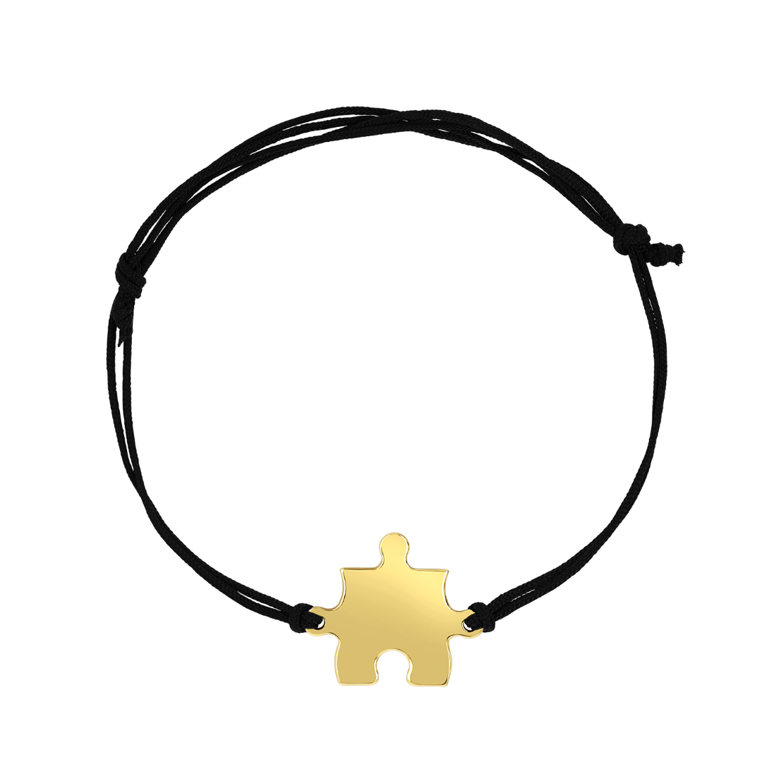 Brățară cu șnur textil și pandantiv puzzle din aur galben de 14K.
