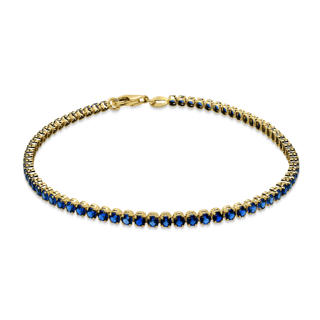 Brățară Tennis din aur galben de 14K cu pietre cubic zirconia albastre.