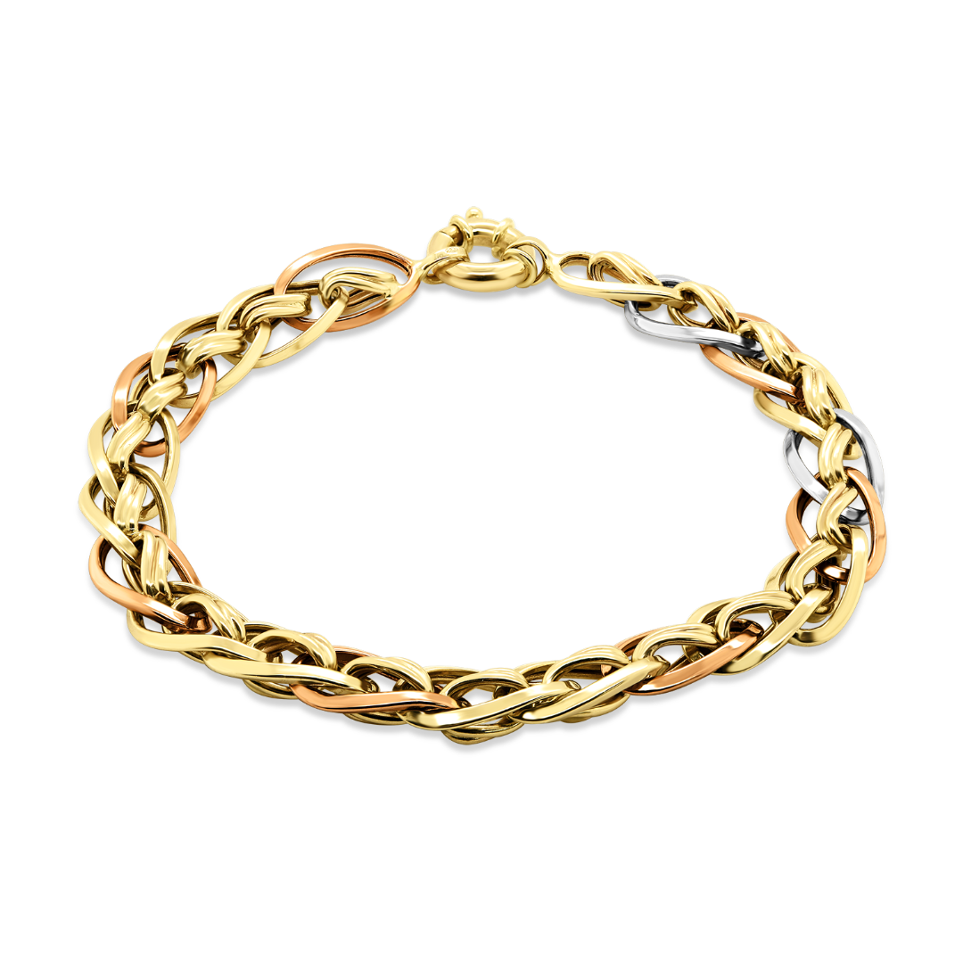 Brățară din aur galben de 14K, cu elemente din aur roz si alb.