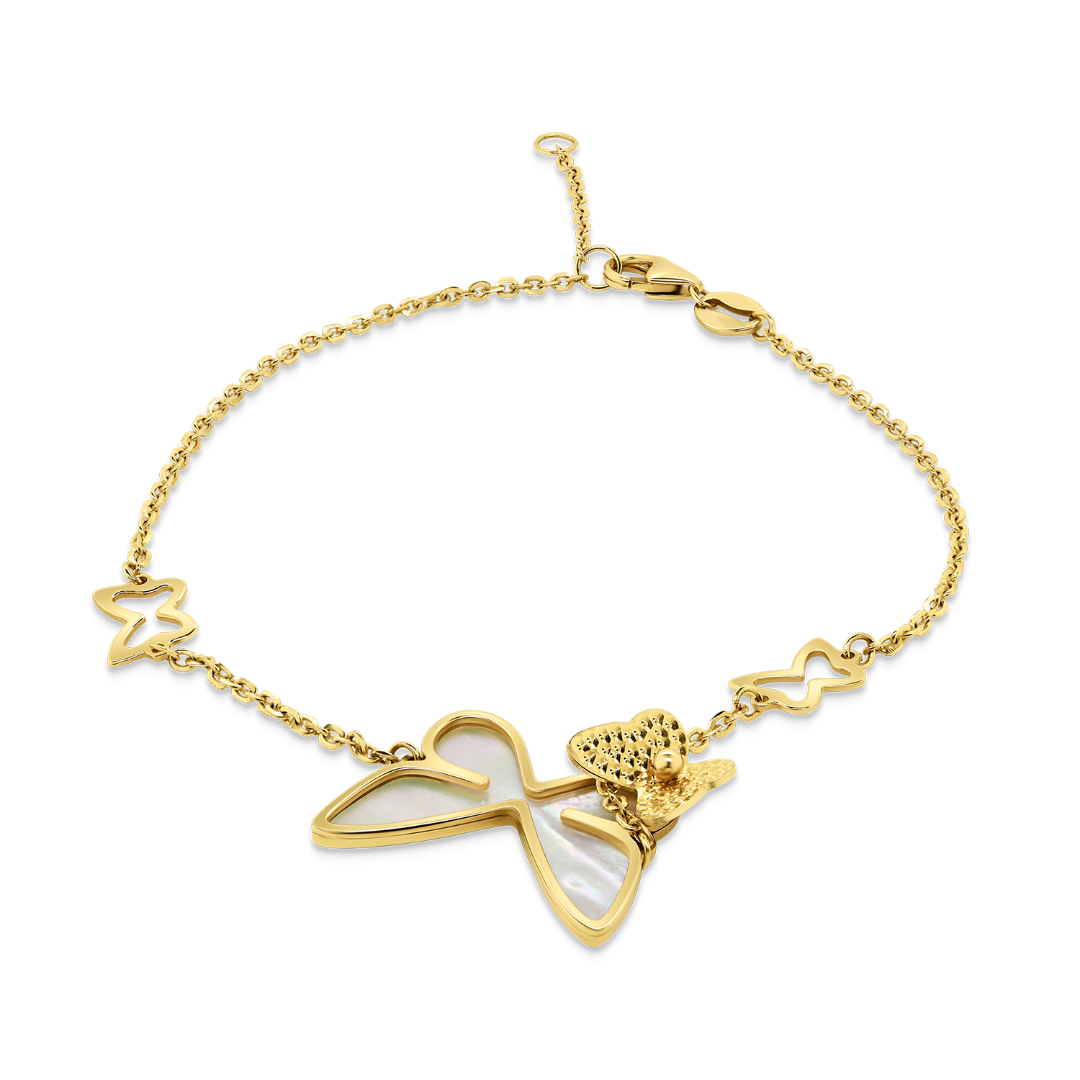 Brățară din aur galben de 14K, reglabilă, cu fluturi și Sidef.
