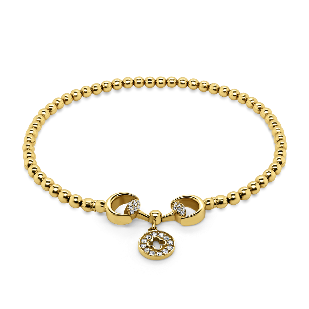 Brățară cu biluțe din aur galben de 14K și pandantiv cu pietre Cubic Zirconia albe.