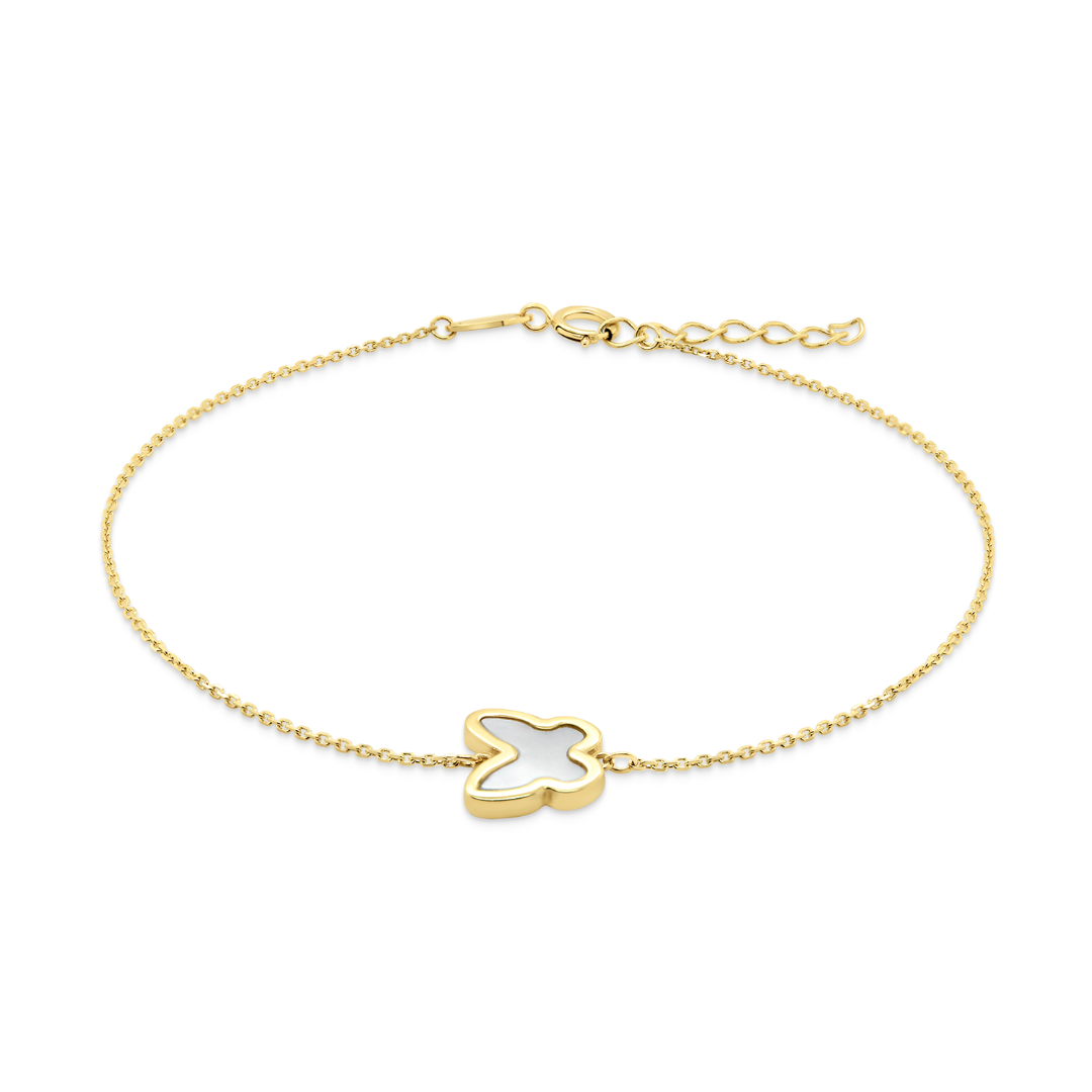 Brățară din aur galben de 14K și pandantiv fluture cu Sidef alb.