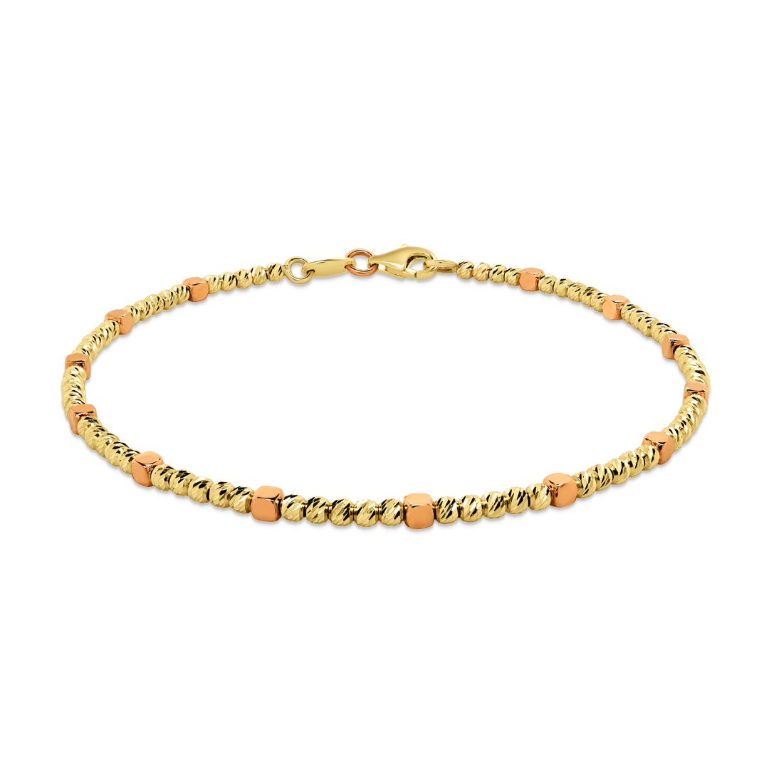 Brățară din aur galben de 14K, cu elemente cubice și biluțe fațetate.