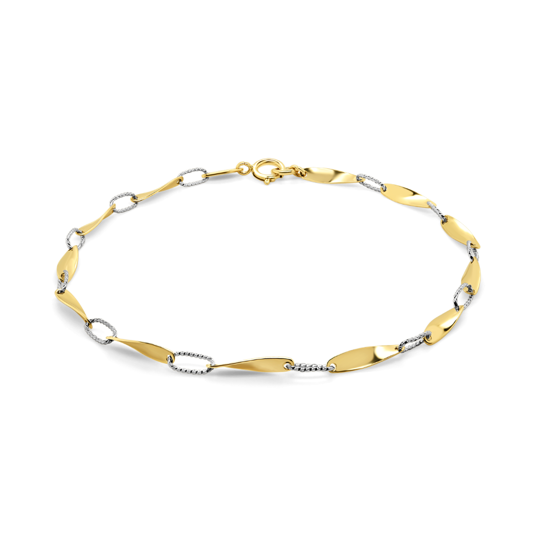 Brățară din aur galben de 14K cu elemente fațetate din aur alb.