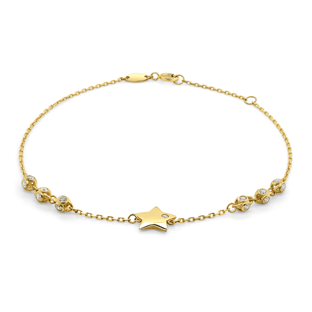Brățară din aur galben de 14K cu pandantiv și elemente cu pietre cubic zirconia.