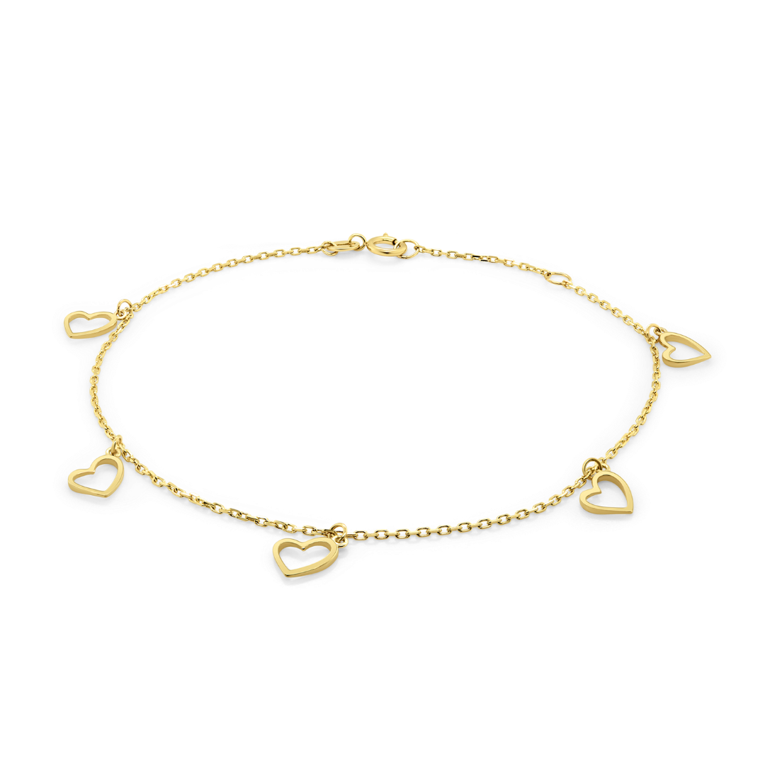 Brățară din aur galben de 14K cu elemente în formă de inimă.