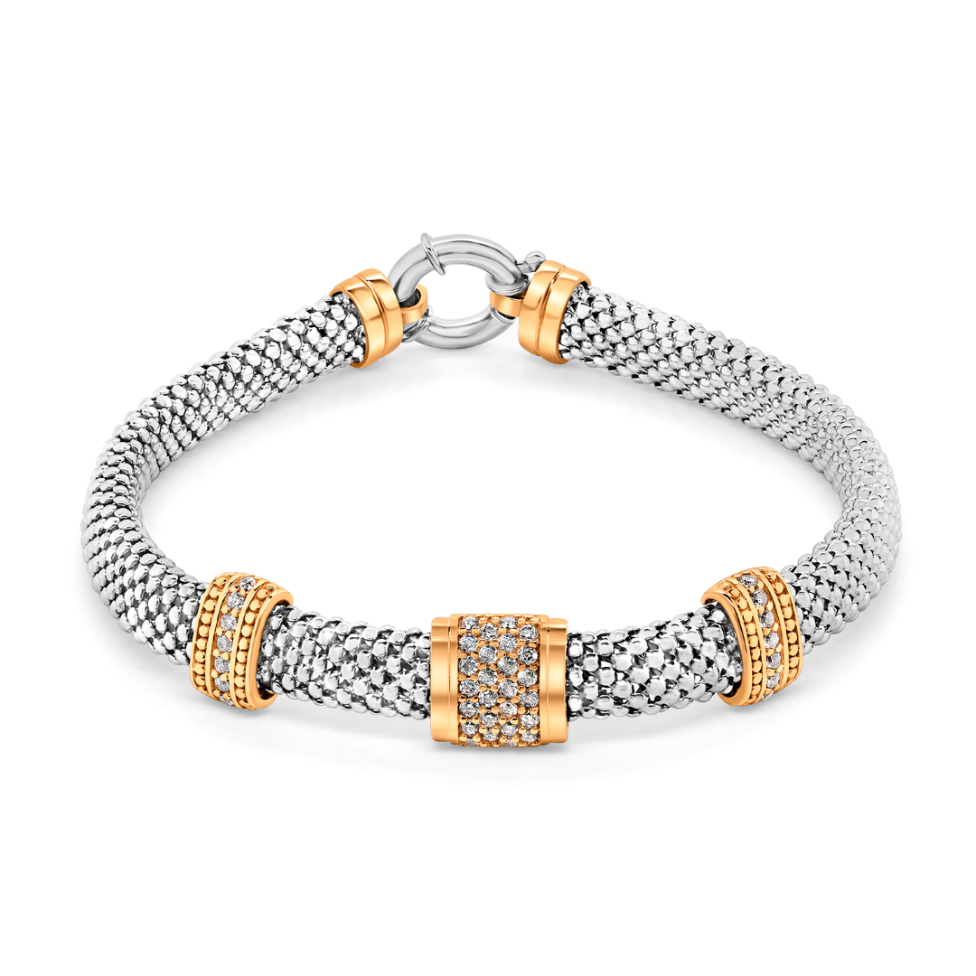 Brățară din aur alb de 14K, cu elemente din aur roz și pietre Cubic Zirconia.