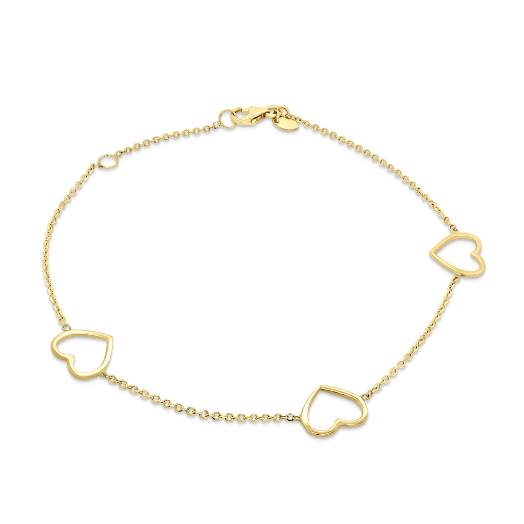 Brățară din aur galben de 14K, cu elemente în formă de inimă.