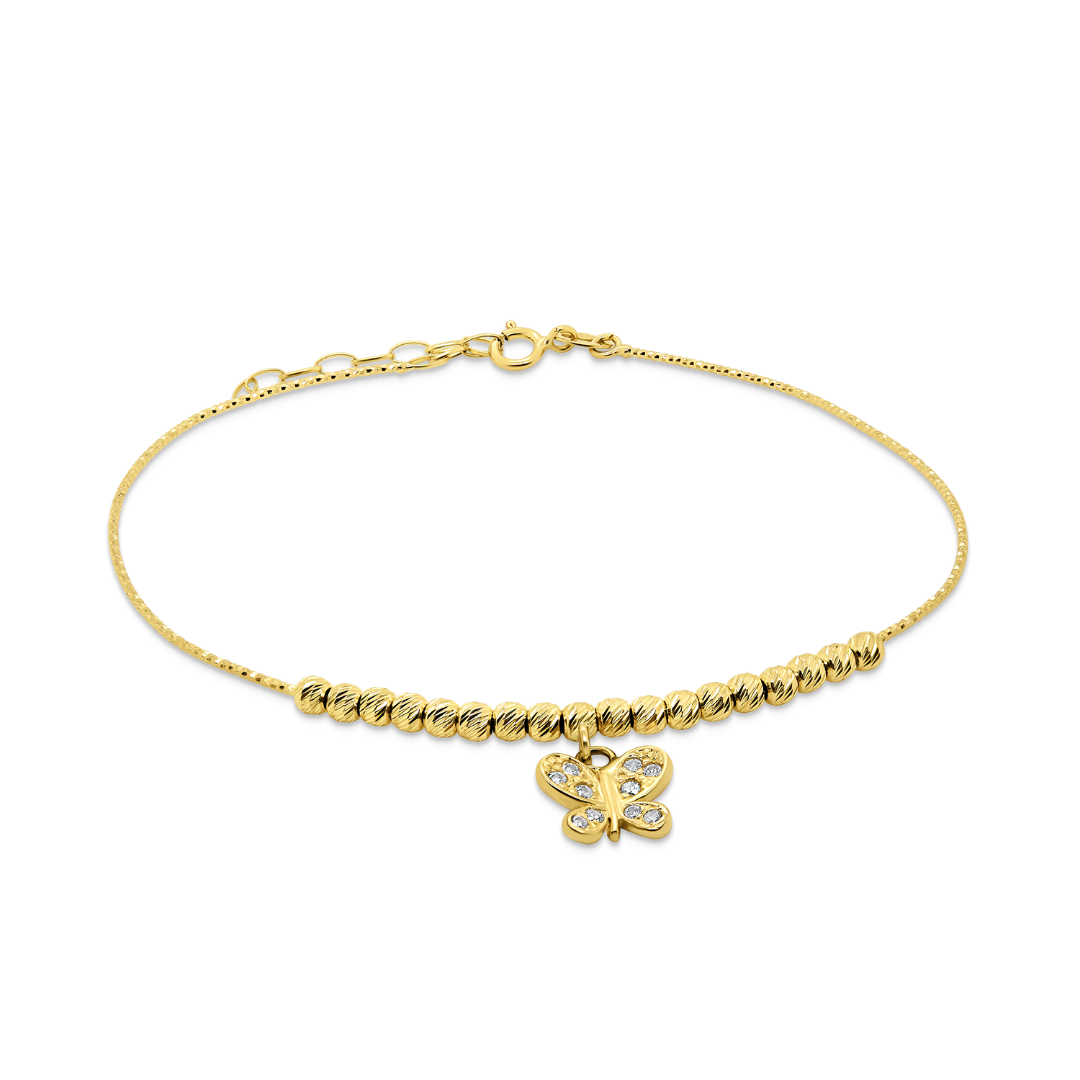 Brățară reglabilă din aur galben de 14K, cu pietre Cubic Zirconia albe.