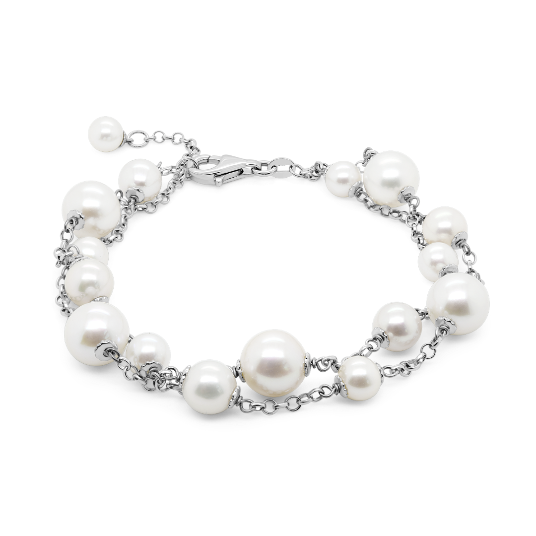 Brățară cu lanț dublu din aur alb de 14K și Perle albe de cultură.