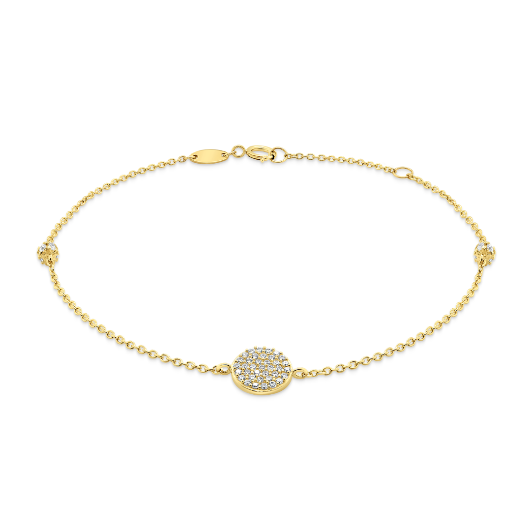 Brățară din aur galben de 14K, cu element rotund și pietre cubic zirconia.