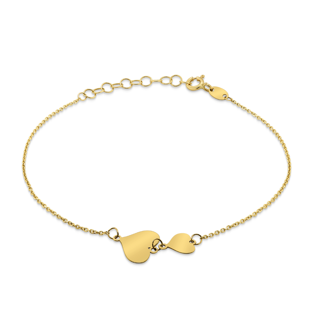 Brățară reglabilă din aur galben de 14K cu pandantive inimă.