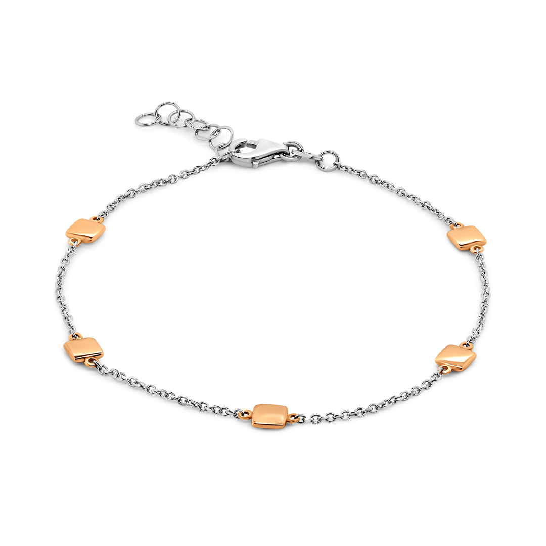 Brățară din aur alb de 14K cu elemente pătrate din aur roz.
