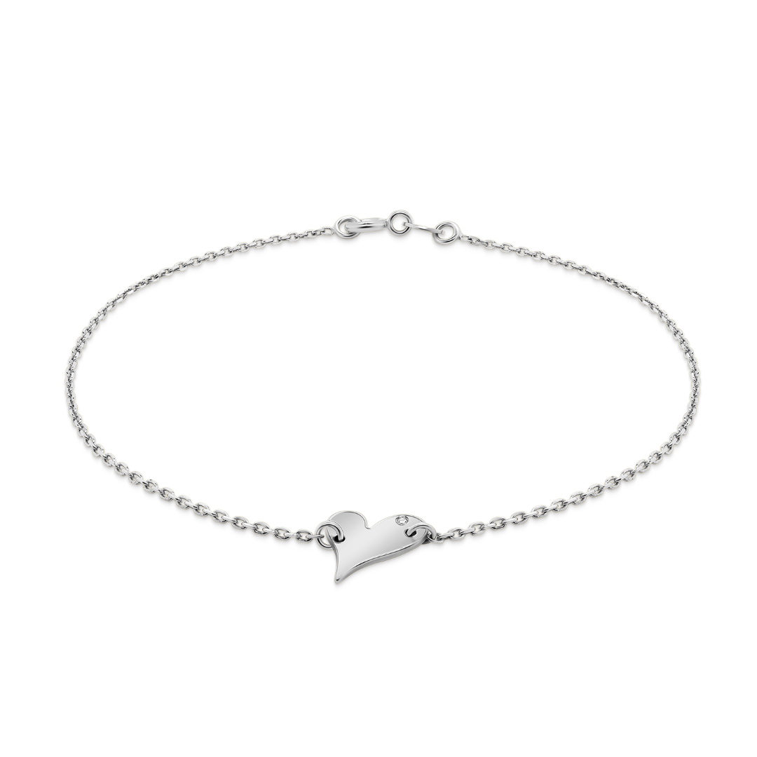 Brățară din aur alb de 14K și element în formă de inimă cu Diamant natural de 0.005ct.