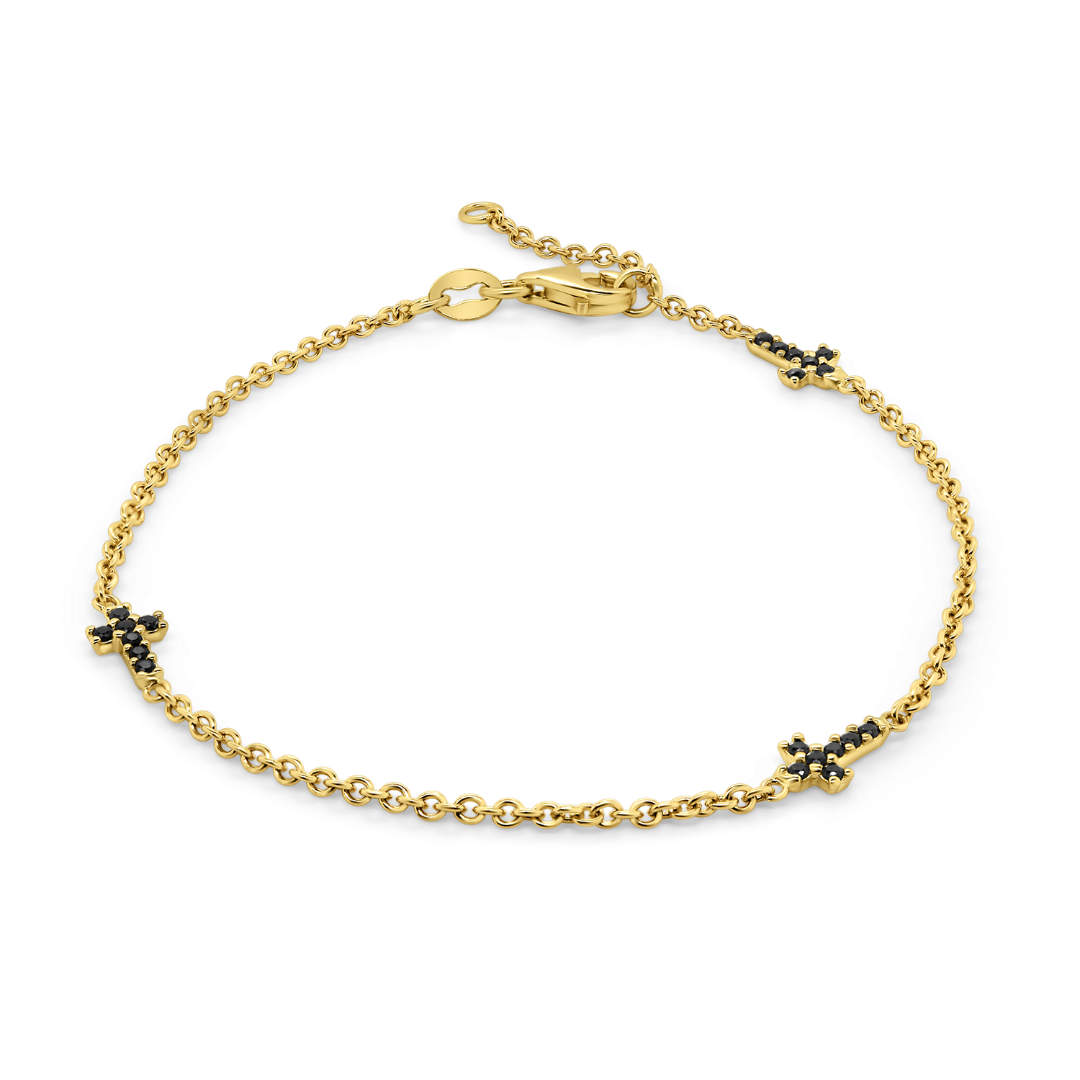 Brățară din aur galben de 14K, cu pandantive în formă de cruce și pietre Cubic Zirconia.