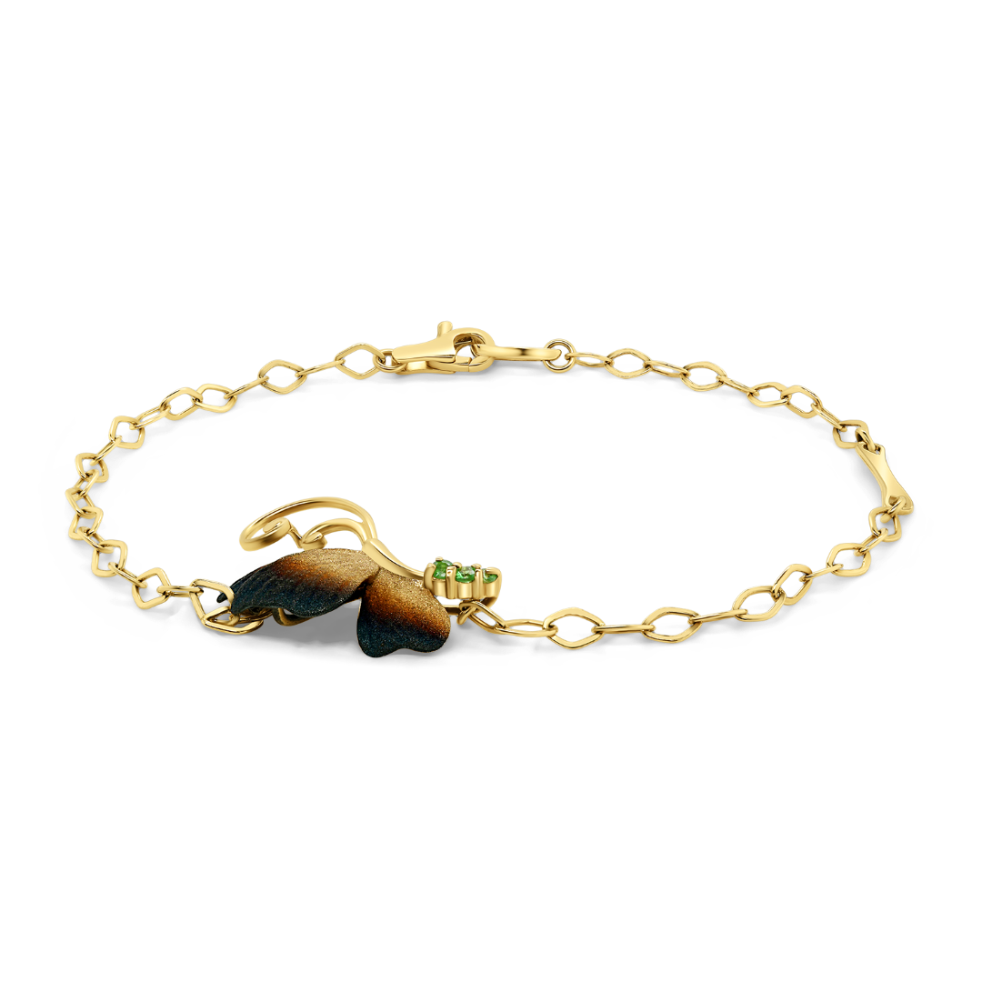 Brățară din aur galben de 14K, cu element fluture și 3 pietre Tsavorit de 0.09ct.