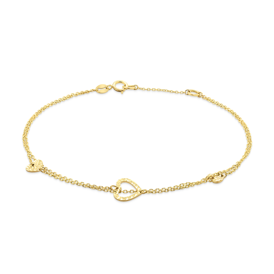 Brățară din aur galben de 14K cu element în formă de inimă și lanț dublu.