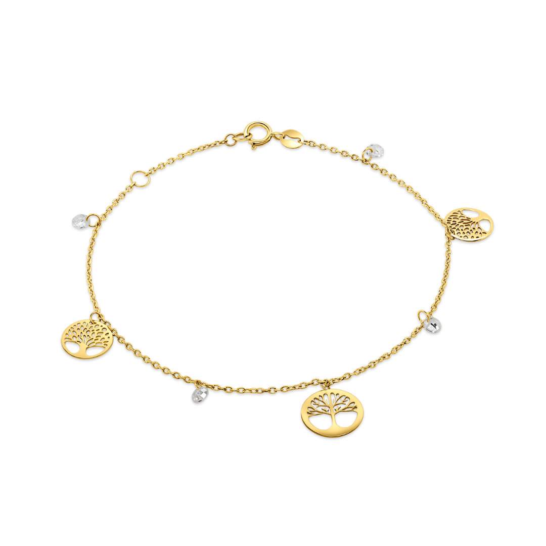 Brățară din aur galben de 14K, cu pandantive și pietre Cubic Zirconia.