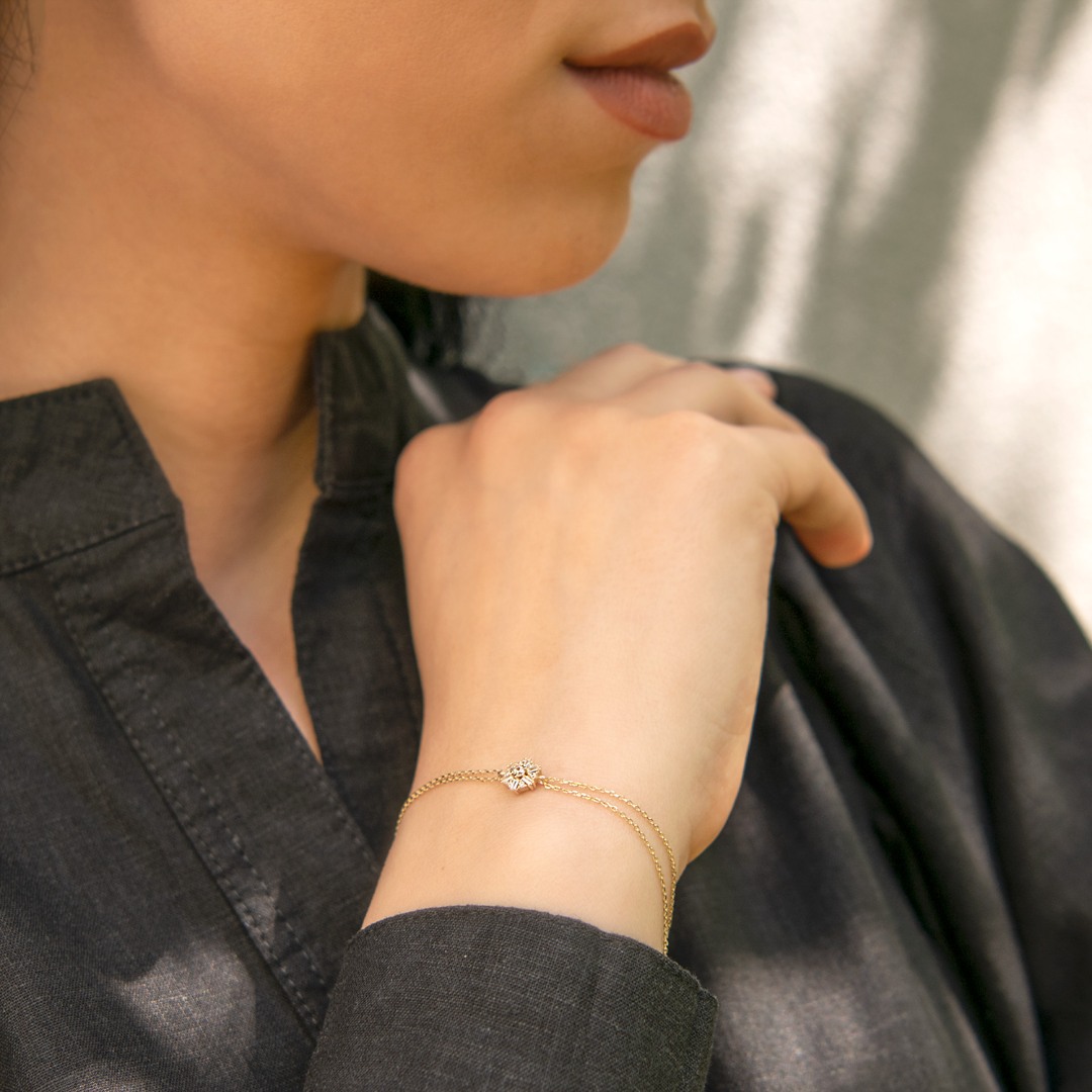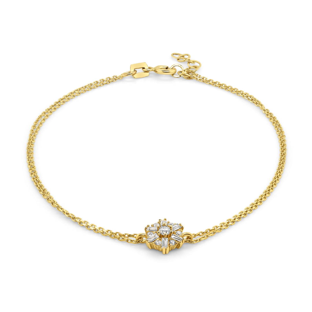 Brățară cu lanț dublu din aur galben de 14K și pietre Cubic Zirconia albe.