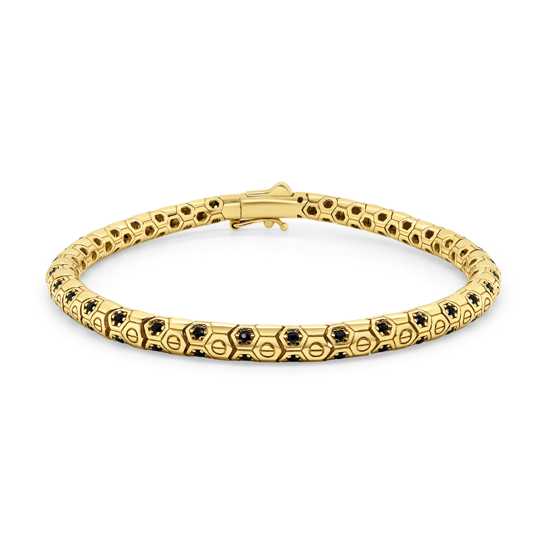 Brățară cu elemente segmentate din aur galben de 14K și pietre Cubic Zirconia negre.