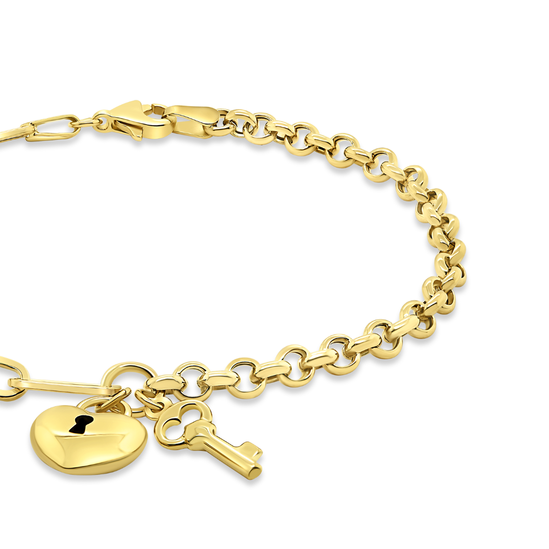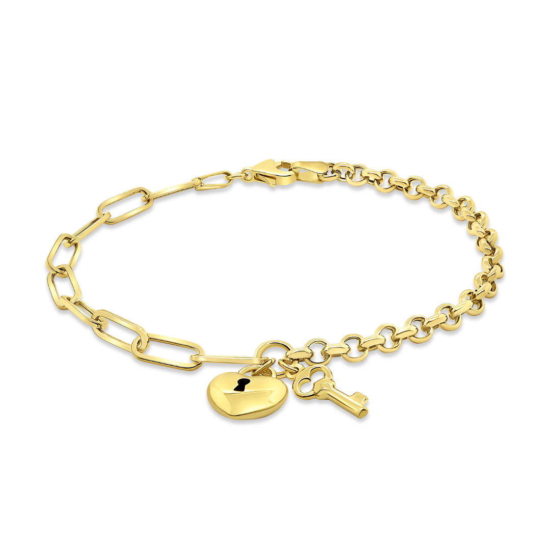 Brățară cu două tipuri de zale din aur galben de 14K.