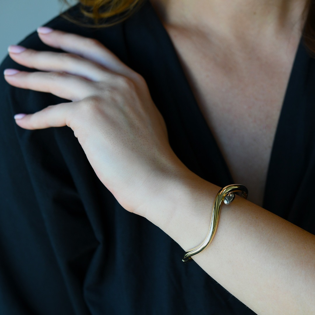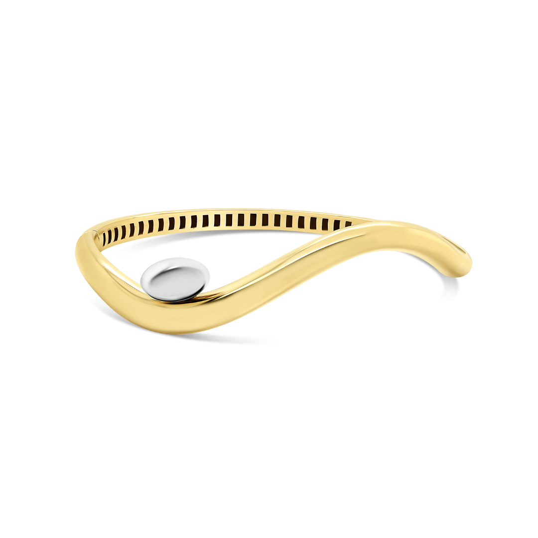 Brățară fixă din aur galben de 14K cu element oval din aur alb.