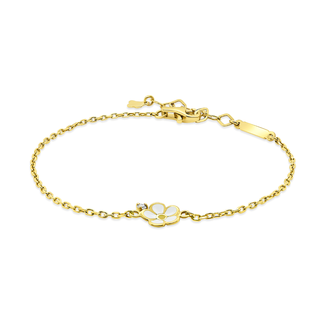 Brățară din aur galben de 14K cu element floare și Diamant natural