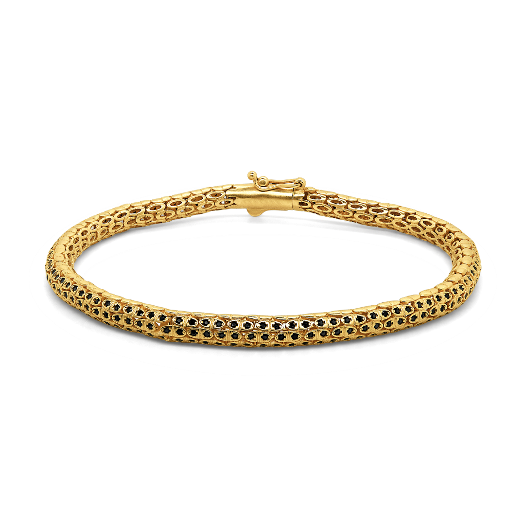 Brățară din aur galben de 14K, cu elemente segmentate și pietre negre
