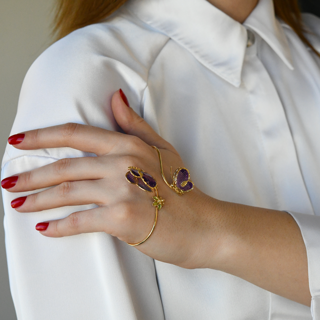 Brățară pentru palmă din aur galben de 14K cu email colorat.