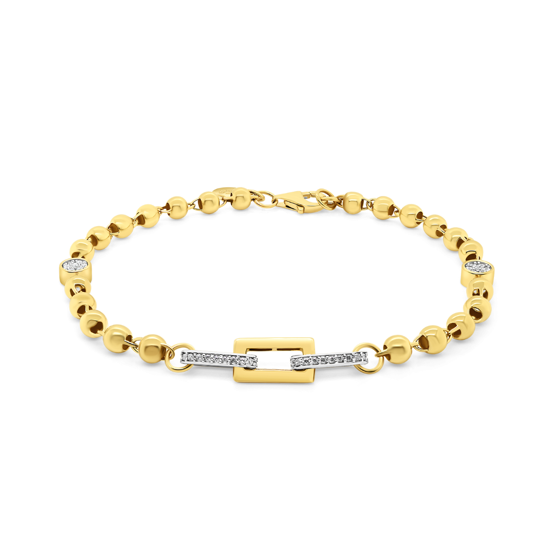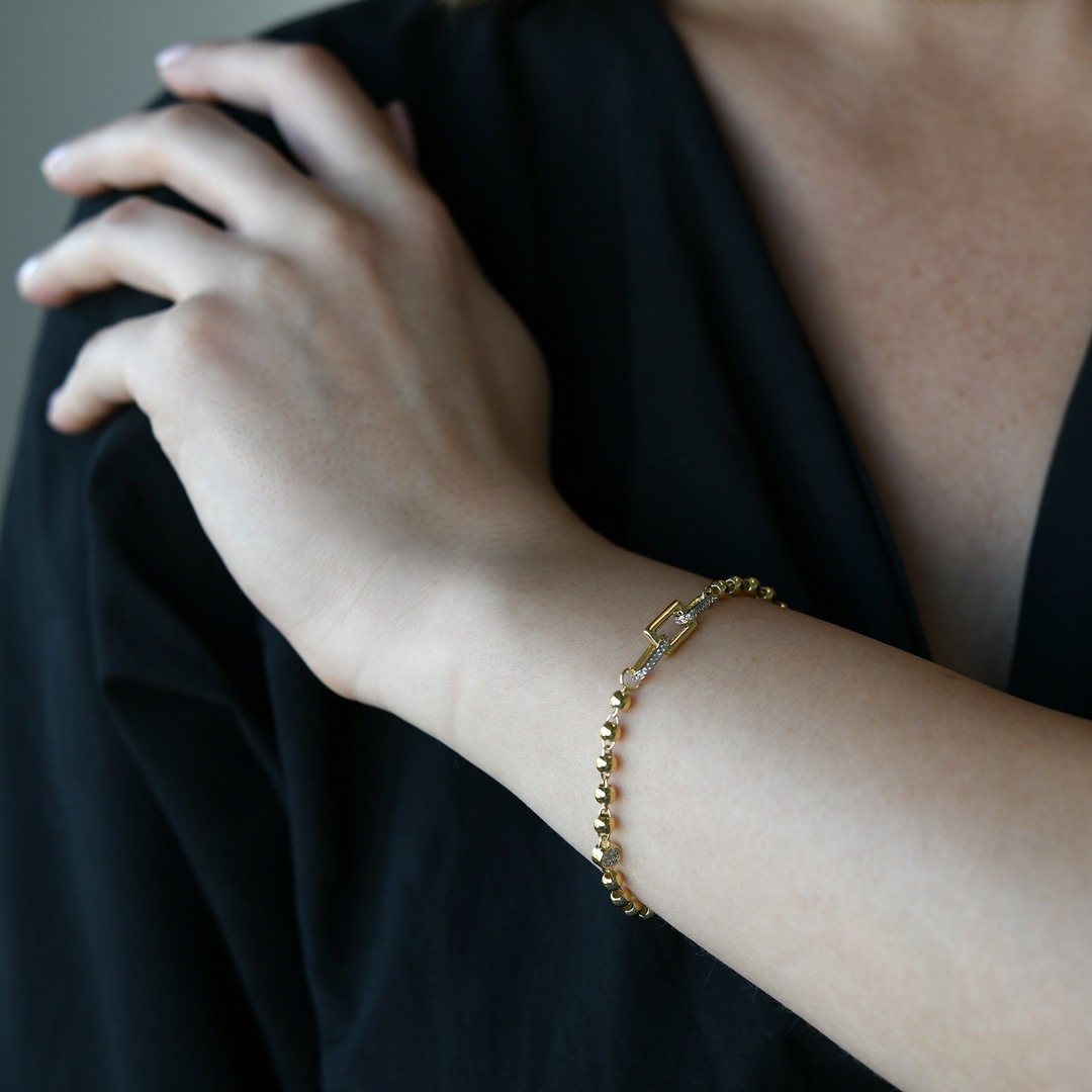 Brățară din aur galben de 18K, cu elemente rotunde și pietre cubic zirconia.