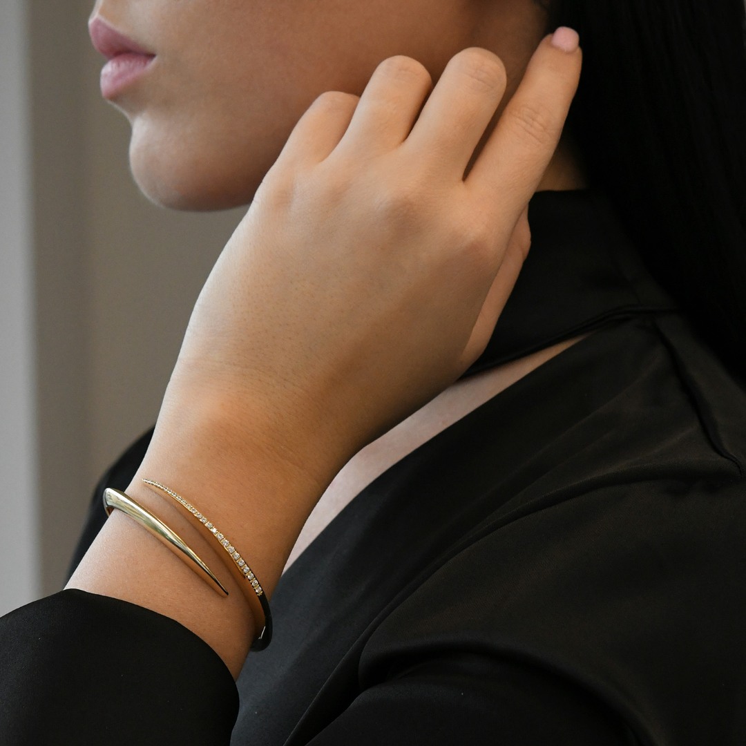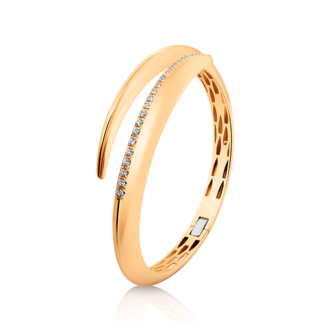 Brățară fixă din aur roz de 14K cu pietre zirconia.
