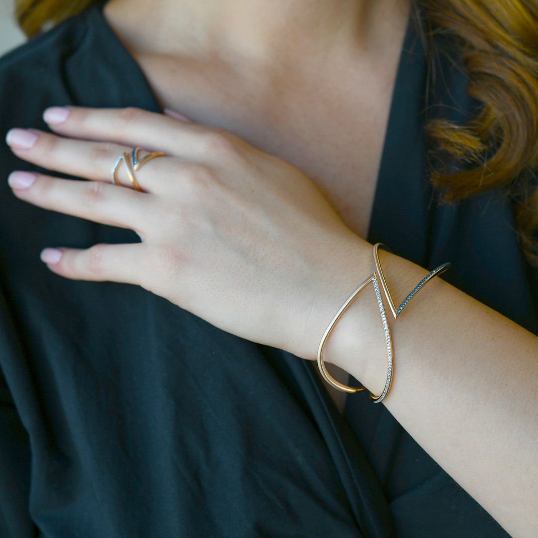 Brățară fixă din aur roz de 14K cu pietre zirconia.