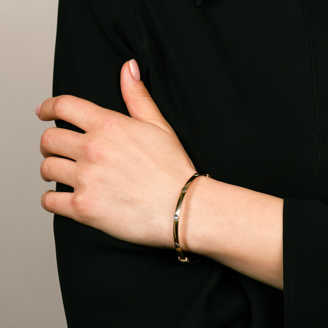 Brățară fixă din aur galben de 14K cu elemente rodinate.