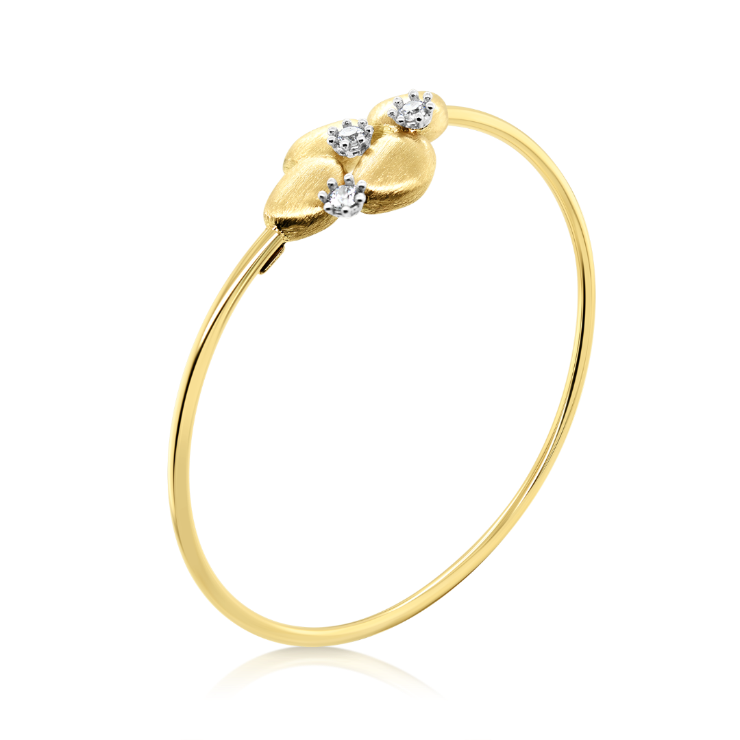 Brățară fixă din aur galben de 14K, cu elemente satinate și pietre cubic zirconia.