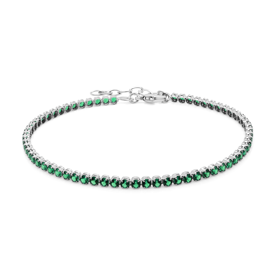 Brățară Tennis din aur alb de 14K cu pietre Cubic Zirconia verzi.