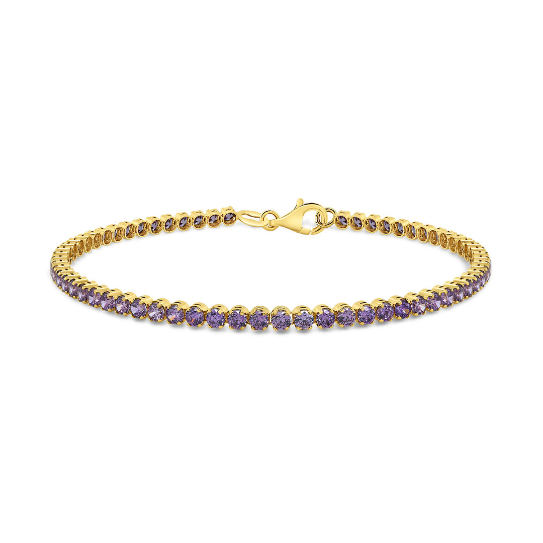 Brățară tennis din aur galben de 14K cu zirconia mov.