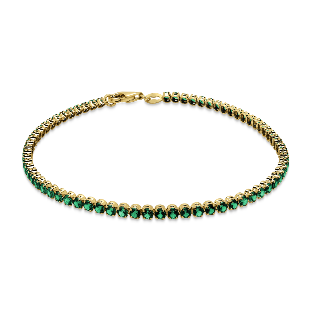 Brățară Tennis din aur galben de 14K cu pietre cubic zirconia verzi.