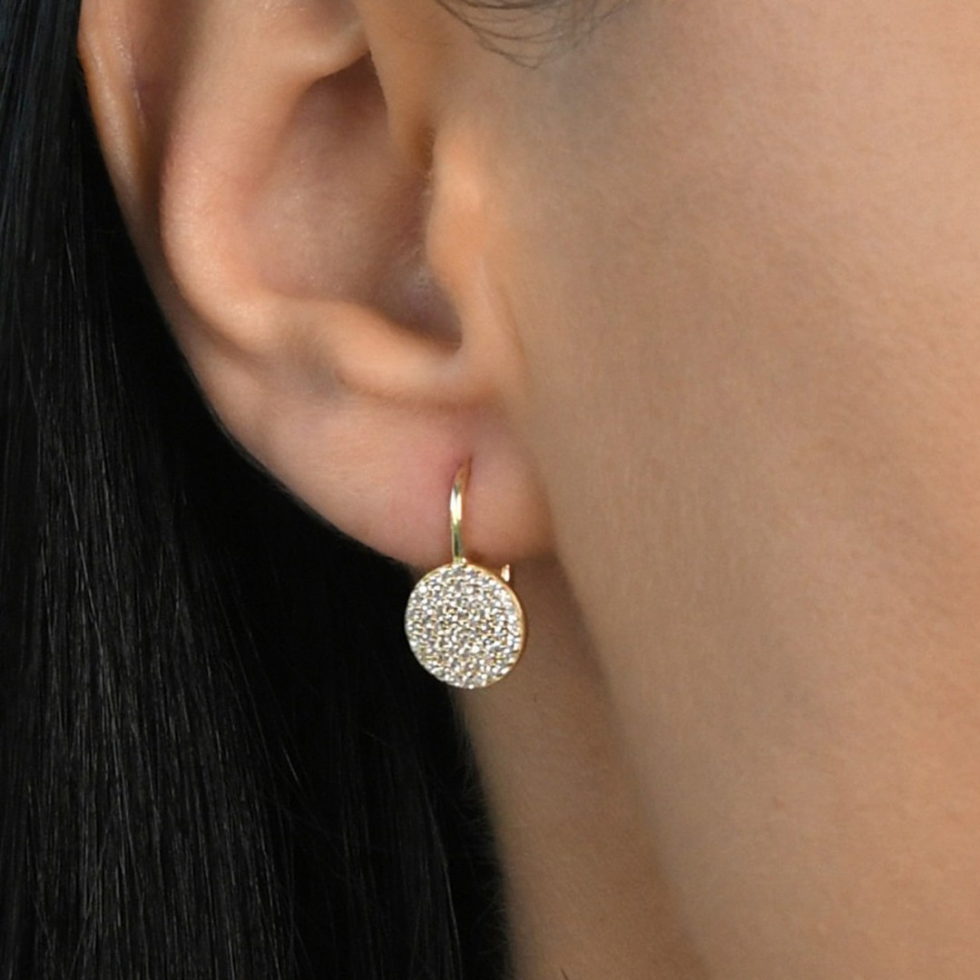 Cercei din aur galben de 14K cu pietre cubic zirconia.