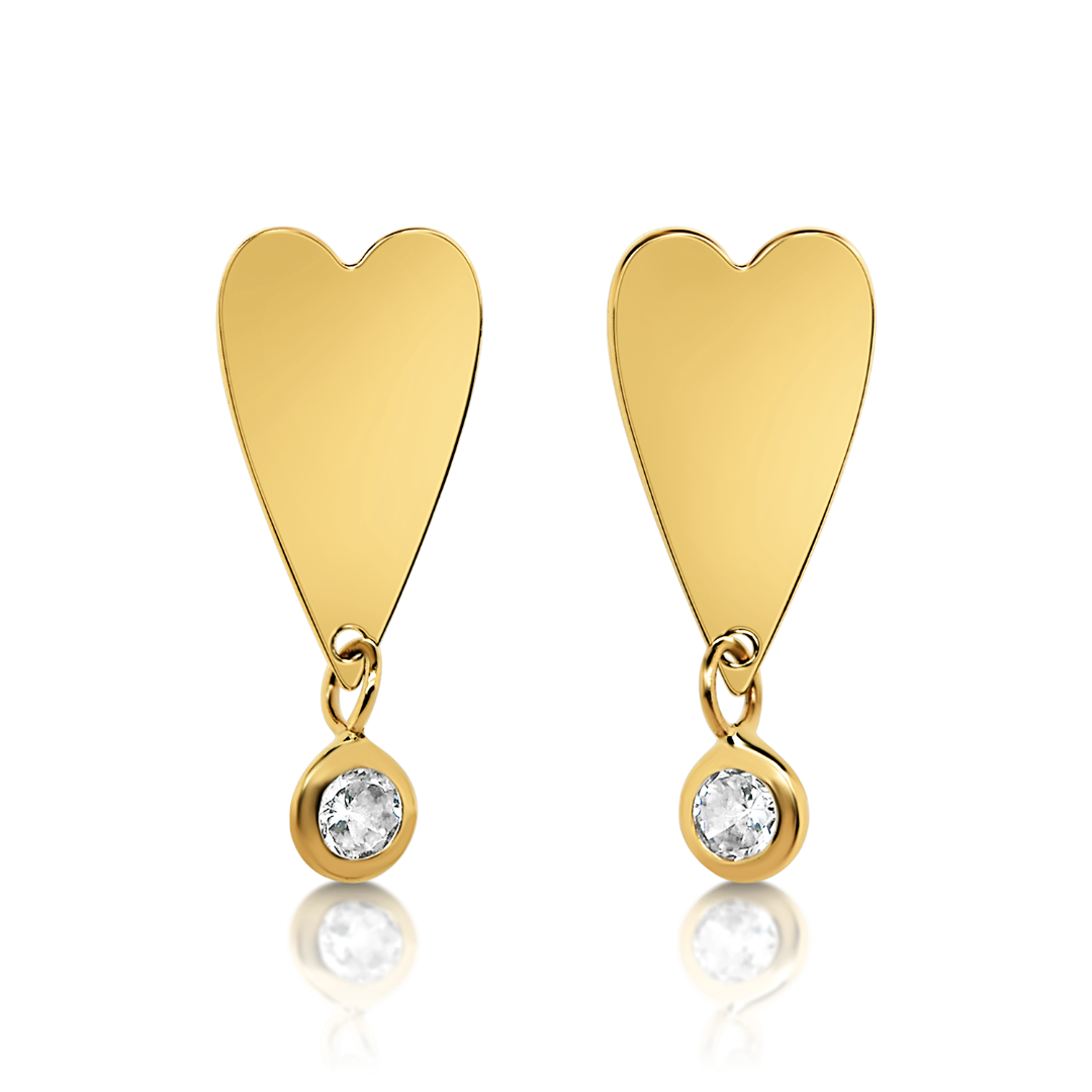 Cercei în formă de inimă din aur galben de 14K, cu pietre Cubic Zirconia albe.
